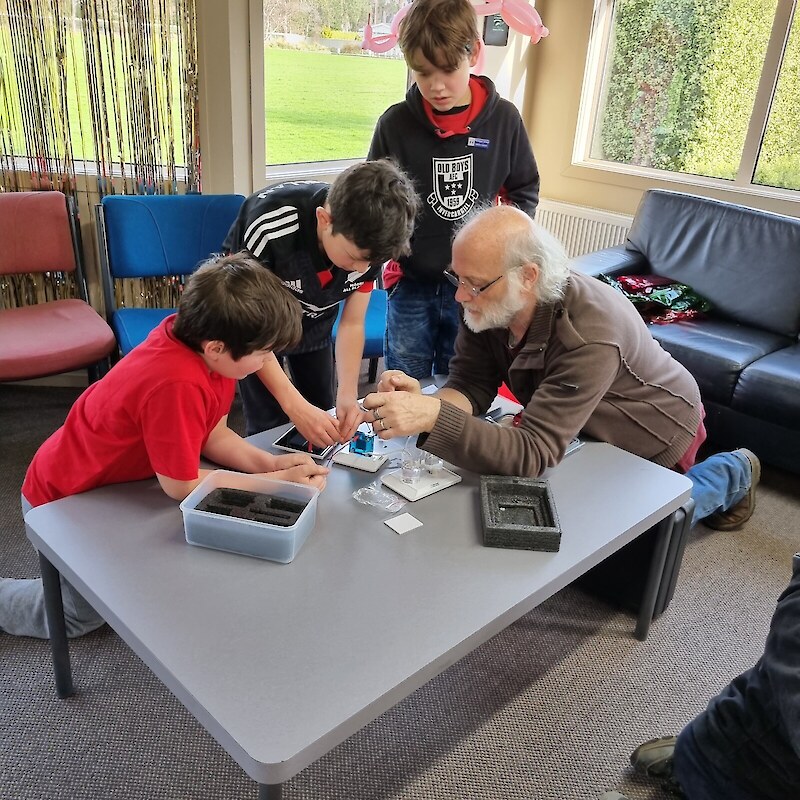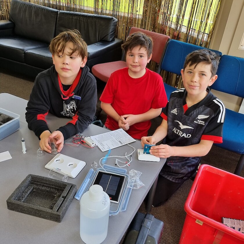 Dr Dave Warren assembling hydrogen kits with Waihopai School students.
