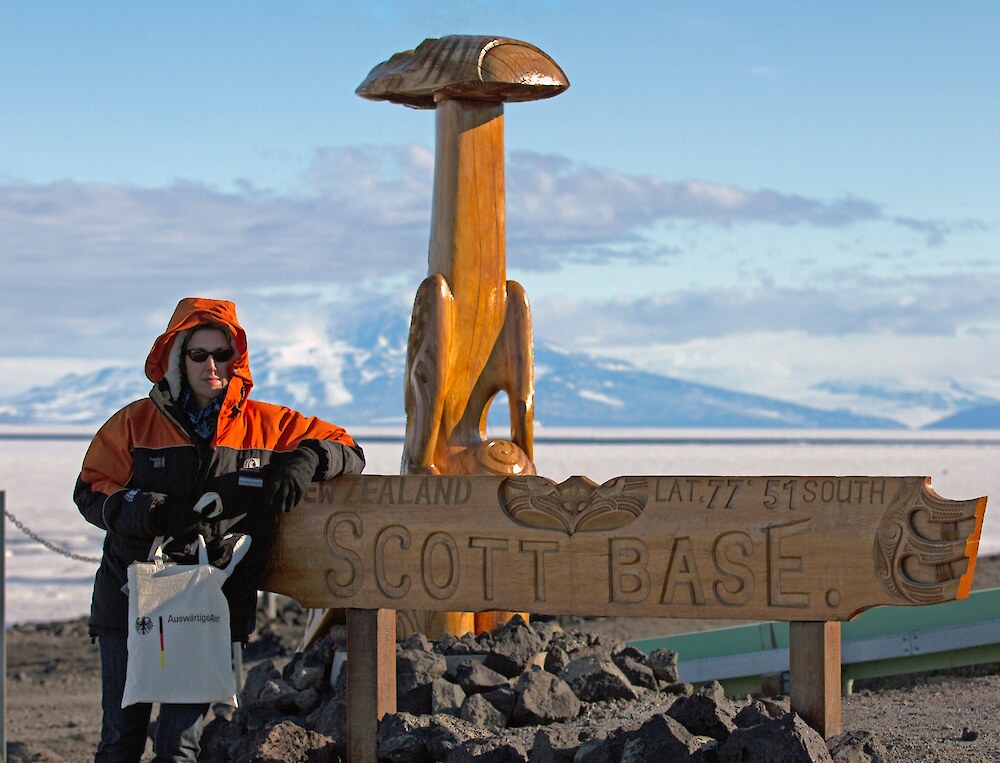 The Pouwhenua at Scott Base was carved by Ngāi Tahu master carver Fayne Robinson.Together with the USA, Italy, South Korea, China, and Germany, New Zealand maintains a station in the Ross Sea, Scott Base, located at 77.85° S, 166.76° E.